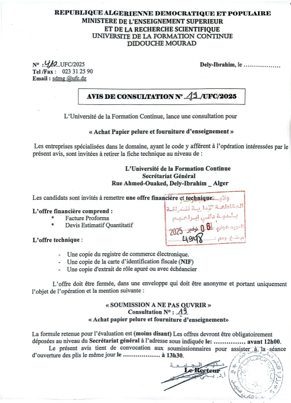 استشارة لاقتناء العتاد و التجهيزات البيداغوجية