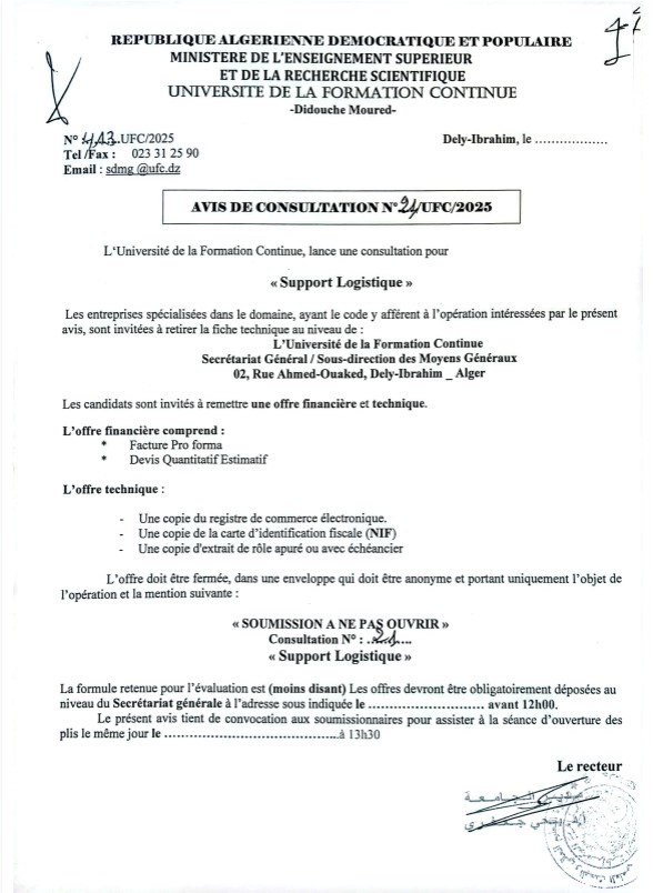 استشارة لاقتناء العتاد و التجهيزات البيداغوجية
