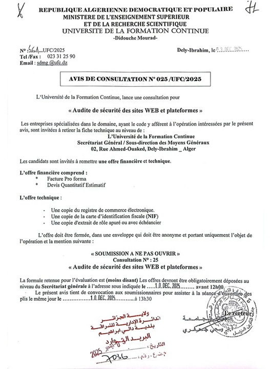 4 ديسمبر 2025 أخر الاخبار, إعلانات, استشارات ومناقصات 0 استشارة بشأن التدقيق الأمني للمواقع الإلكترونية والمنصات التعليمية