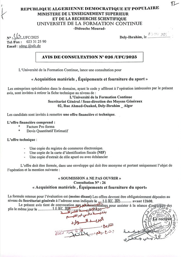 استشارة لاقتناء المواد والمعدات والتجهيزات الرياضية
