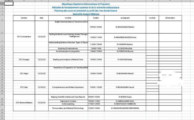 تنظم جامعة التكوين االمتواصل تجمعات حضورية اختيارية لطلبة ليسانس إنجليزية طبية