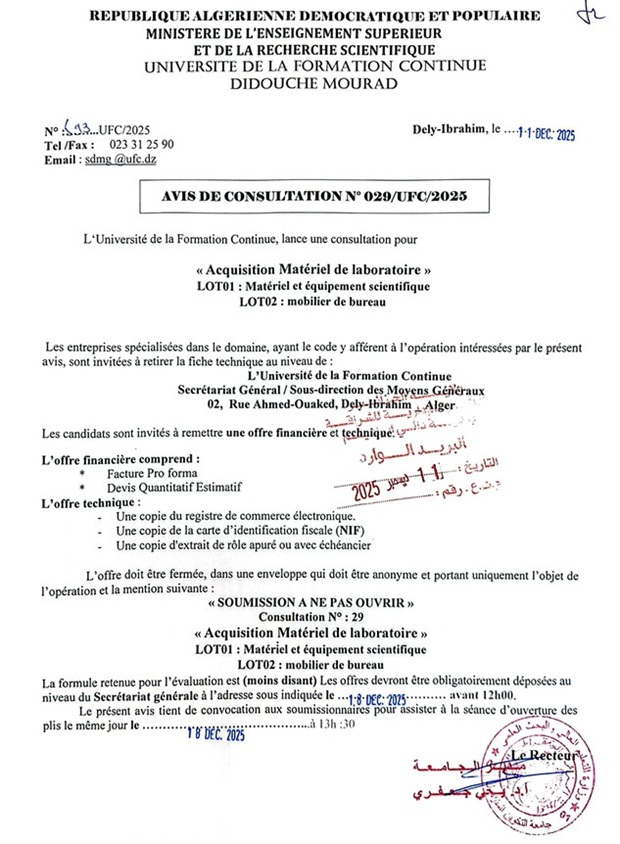 استشارة خاصة بالتأمين على المباني و حظيرة السيارات التابعة لجامعة التكوين المتواصل لسنة 2026