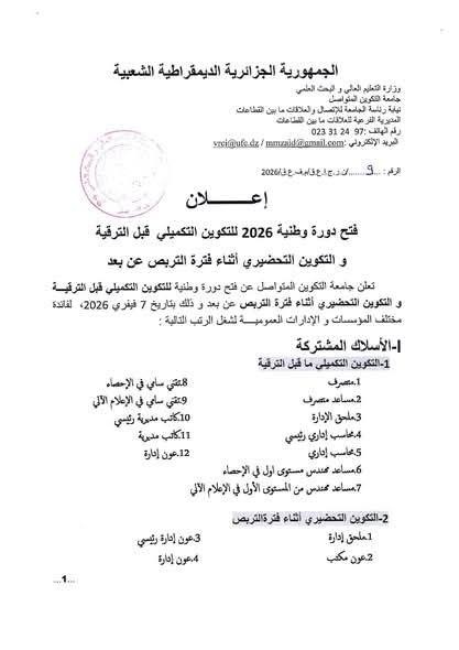 انطلاق الدورة الوطنية الخاصة بالتكوين التكميلي و التحضيري لفائدة الأسلاك المشتركة و الخاصة التابعة لمصالح الوظيفة العمومية بتاريخ 07 من شهري فيفري 2026.