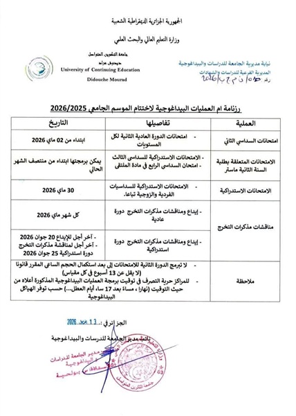 جدول يلخص اهم عمليات نهاية الموسم الجامعي