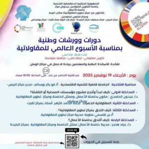 دورات وورشات وطنية بمناسبة الأسبوع العالمي للمقاولاتية اقرأ المزيد إجراء امتحانات نهاية التكوين لبعض الاسلاك والرتب اقرأ المزيد مناقشة مذكرة مؤسسة اقتصادية بمركز الطارف طور الماستر قانون الاعمال اقرأ المزيد مناقشة أول مذكرة تخرج للحصول على شهادة مشروع مؤسسة اقتصادية اقرأ المزيد الحصاد الأسبوعي لنشاطات المراكز اقرأ المزيد فعاليات الندوة الموسومة بـ Medical English and Digital Platforms بمركز خميس مليانة اقرأ المزيد تحميل المزيد
